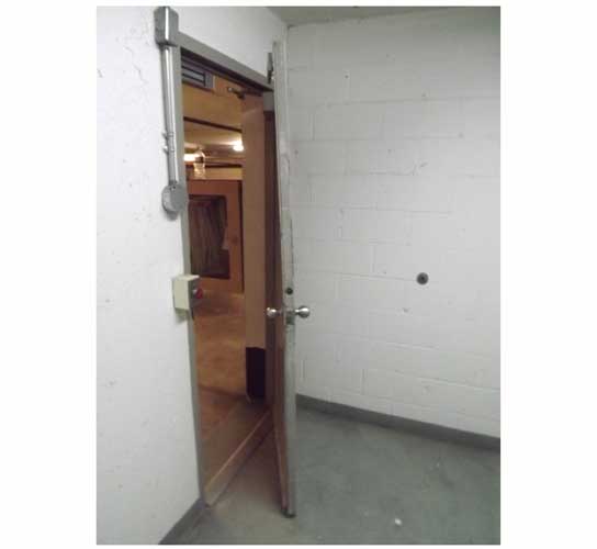 "Crossover Floor." The electrical locks on those doors unlock when there is a fire alarm. |